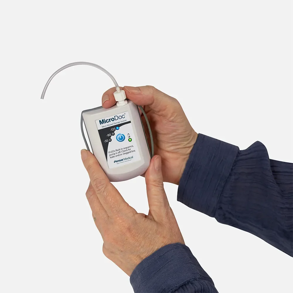 The MicroDoc is a single-use and disposable NPWT system that reduces infection risk and ensures that patients can maintain their active lifestyles.